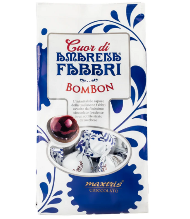 Ontdek de verfijnde Cuor di Amarena Bombon van Fabbri — een elegante praline waarin een zachte, fruitige Amarena‑kers centraal staat.