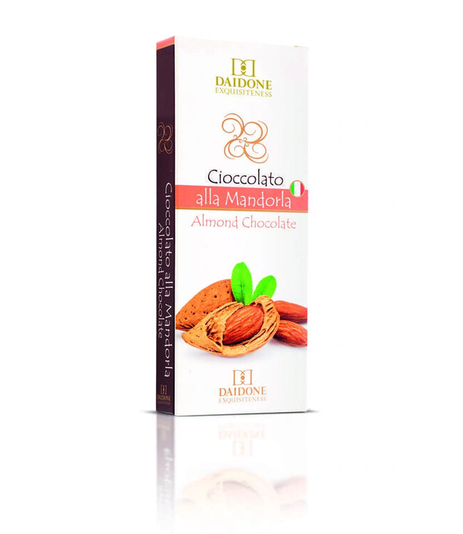 Chocolade met amandelen. Amandel heeft een zoete smaak die perfect combineert met de chocolade. Lekker voor bij koffie, thee of wijn.